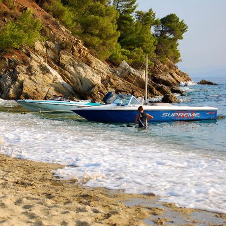 We meticulously inspect each rental boat before it leaves our beach ,we also make sure you are comfortable in yours Vromolimnos boat rental by showing you how to use all the equipment plus make sure you are completely comfortable with our cost .